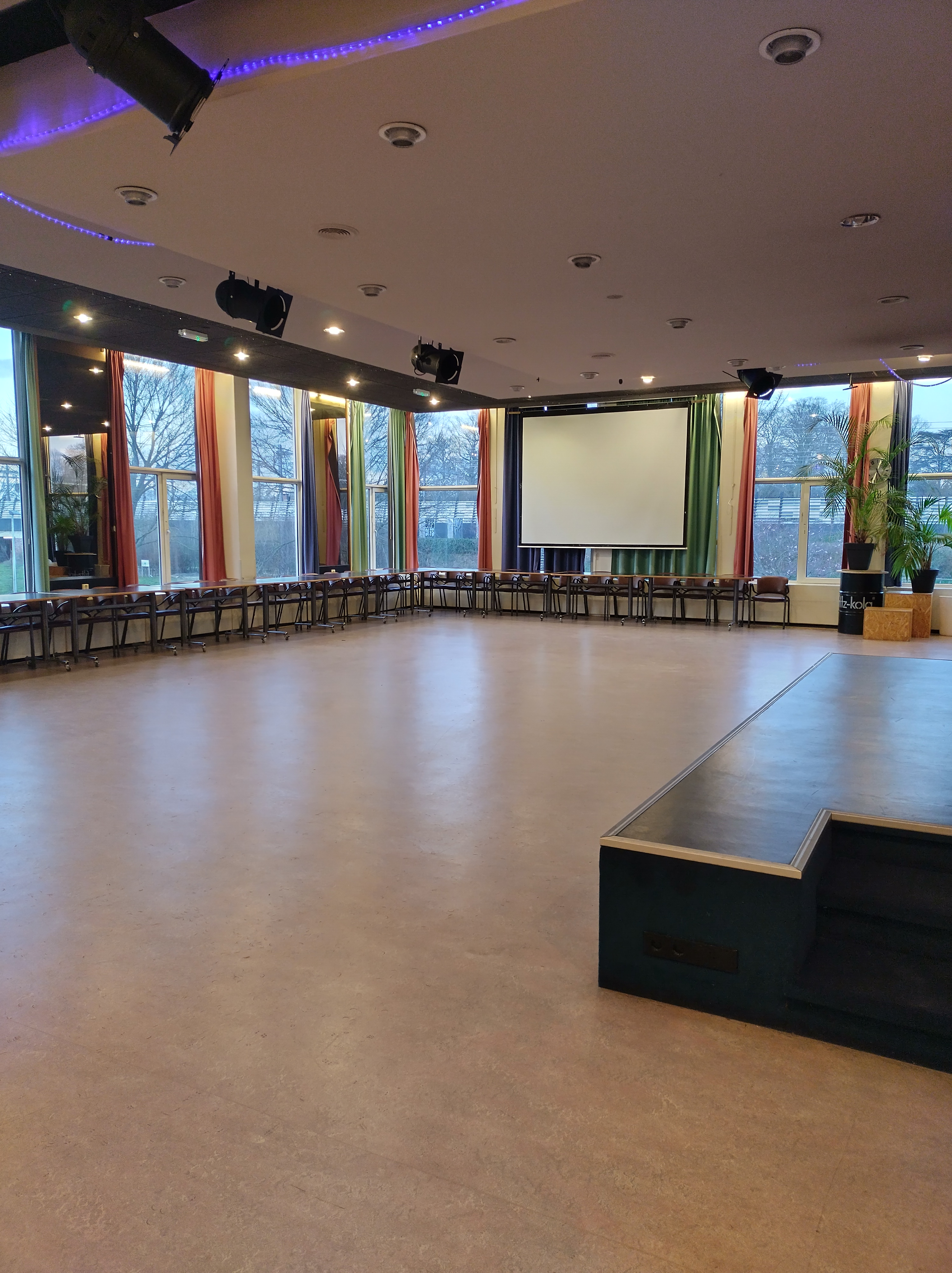 Omdat er één deur verplicht dicht moet kun je, als je wat later nog naar binnen wilt, het telefoonnummer bellen wat op de deur staat. Dan komen we je halen.